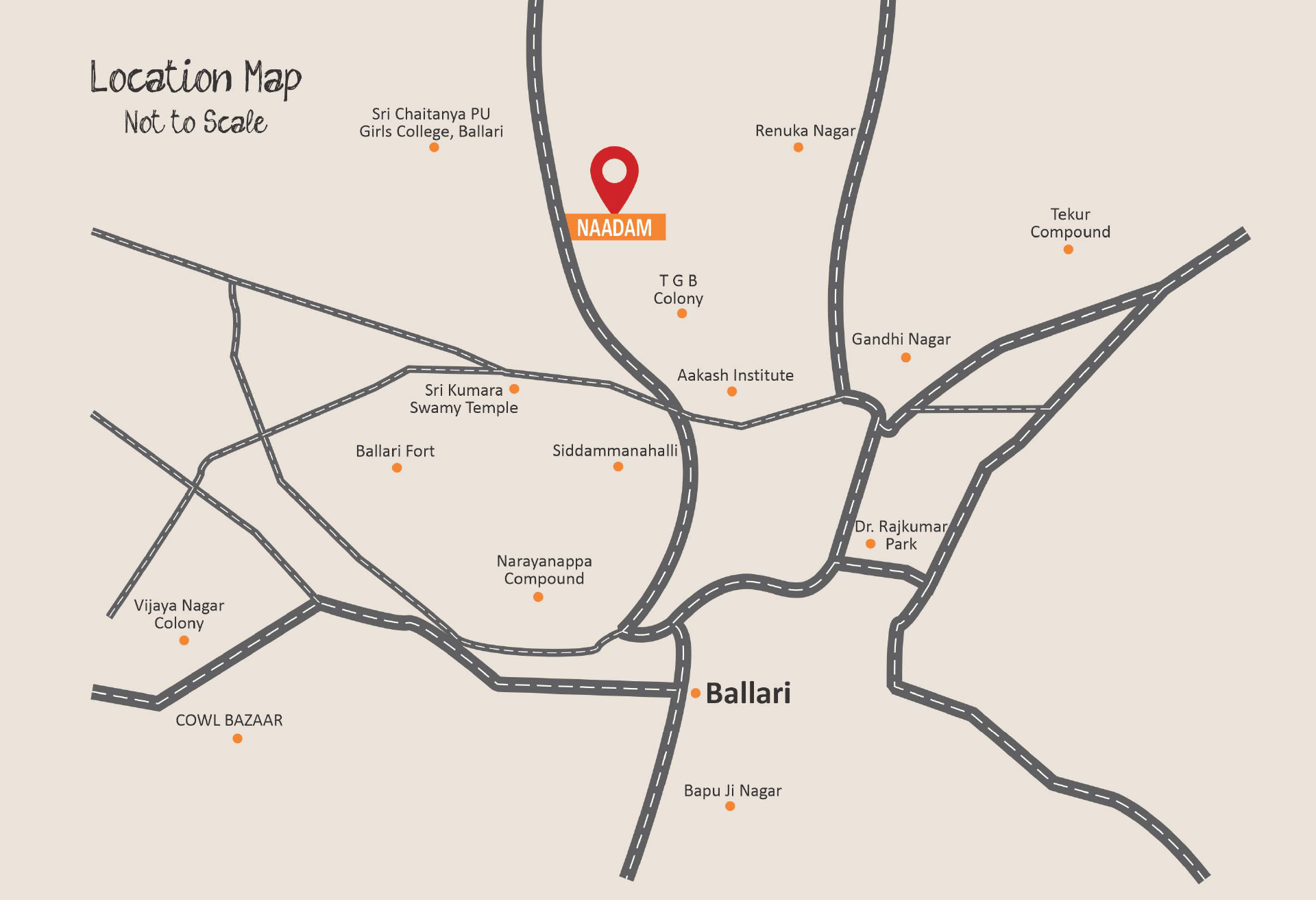 Naadam, near the Kumbhara Hills on Siriguppa Road, offers a peaceful lifestyle surrounded by nature. Conveniently located near top schools, hospitals, and Infantry Road's shopping and dining, it provides an elegant escape from the bustle of Ballari city.